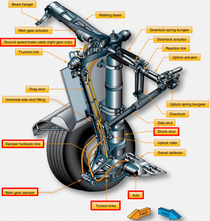 랜딩기어의 구조는 매우 복잡해요. 각 구성 요소는 서로 연결되어 있으며, 비행기의 안전성을 높이기 위해 정밀하게 설계되어 있답니다.