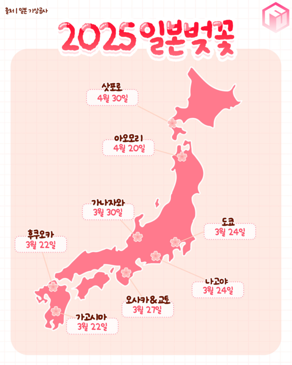 일본에서도 벚꽃 시즌이 다가오고 있습니다. 2025년 일본의 주요 도시에서의 벚꽃 개화 시기는 다음과 같습니다.