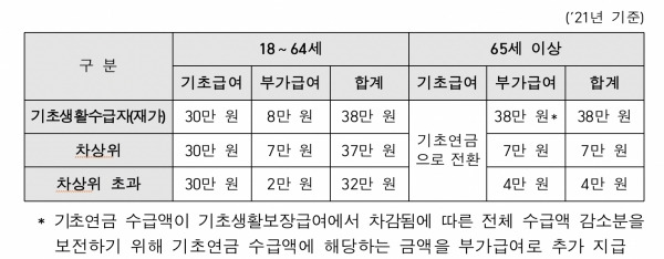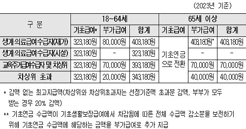 기본 allowance와 추가 allowance로 나눠서 지급되며, 65세 이상인 경우에는 상대적으로 높은 금액이 지급됩니다.