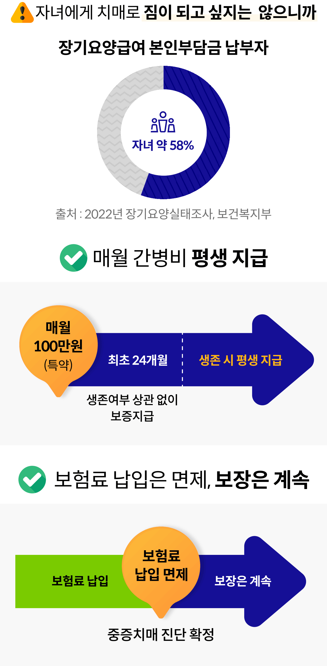 - 간병비 지원 : 월 최대 1,000,000원의 간병비를 지원받을 수 있습니다. 이 지원은 최소 24개월 동안 지속됩니다.